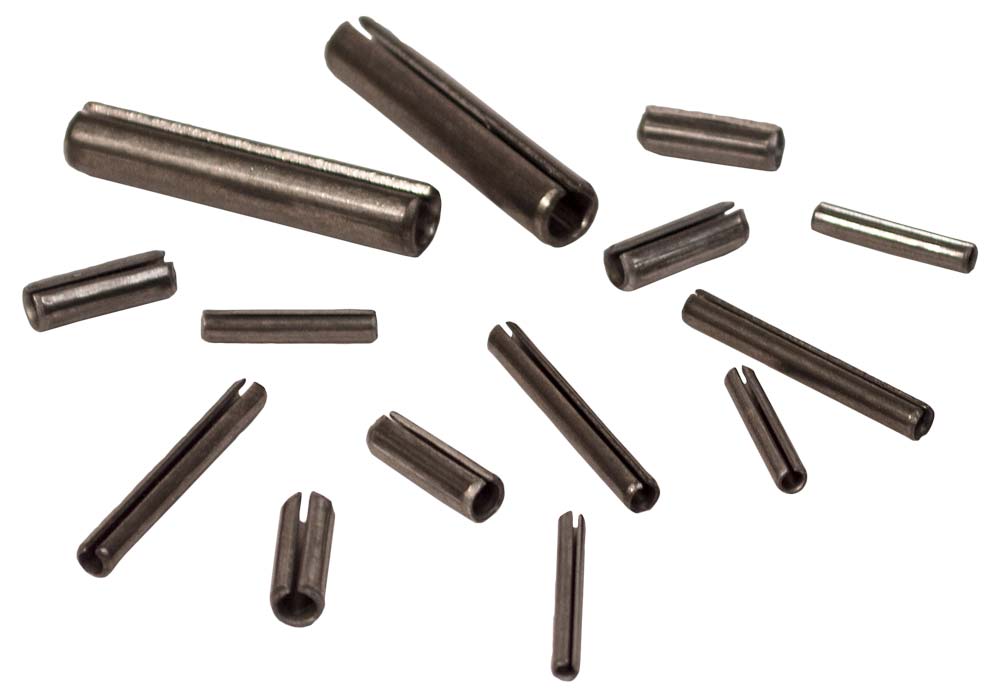 Slotted spring pins are used in fastening applications where solid pins are ineffective due to hole wear or where accuracy is not critical allowing for greater tolerance in the manufacture of assembly components. They are often used in anti-rotational applications to maintain alignment.